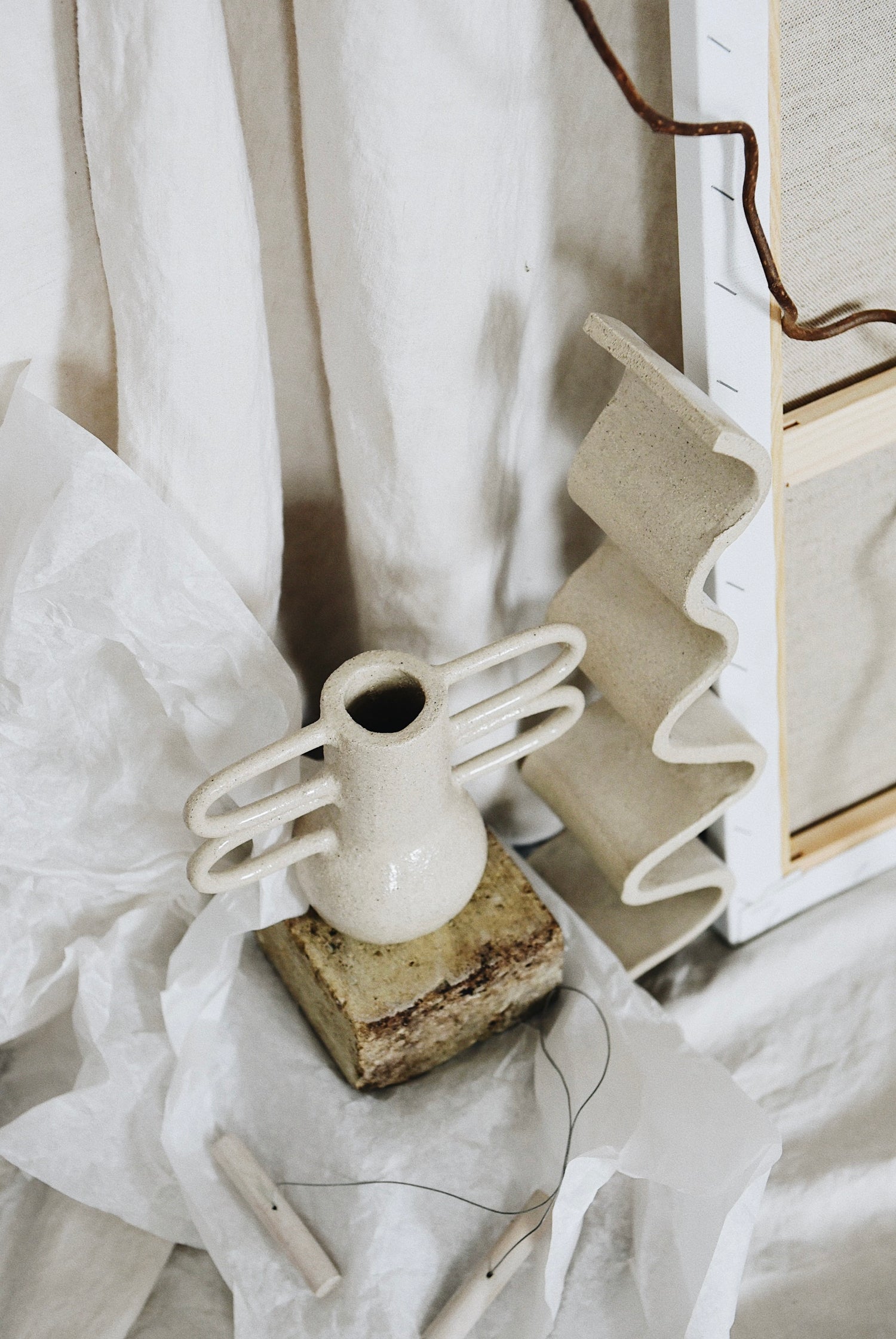 Avec Elsa Adamus, nous avons imaginé une série de pièces en grès,...