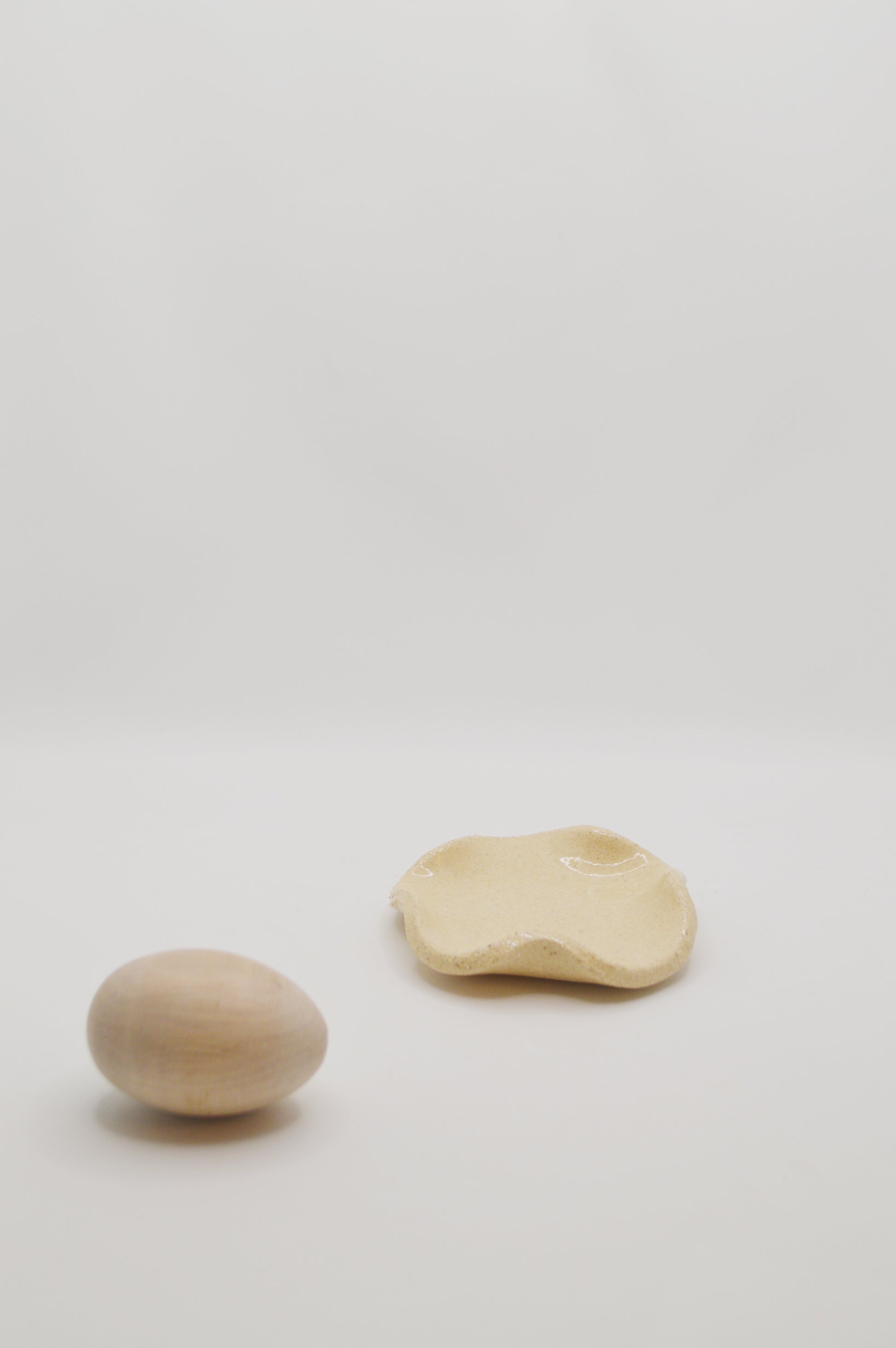 Grès crème chamottée et émail transparent; hauteur 1,5cm, diamètre 9,5cm, diamètre intérieur 6,5cm , poids environ 100g.