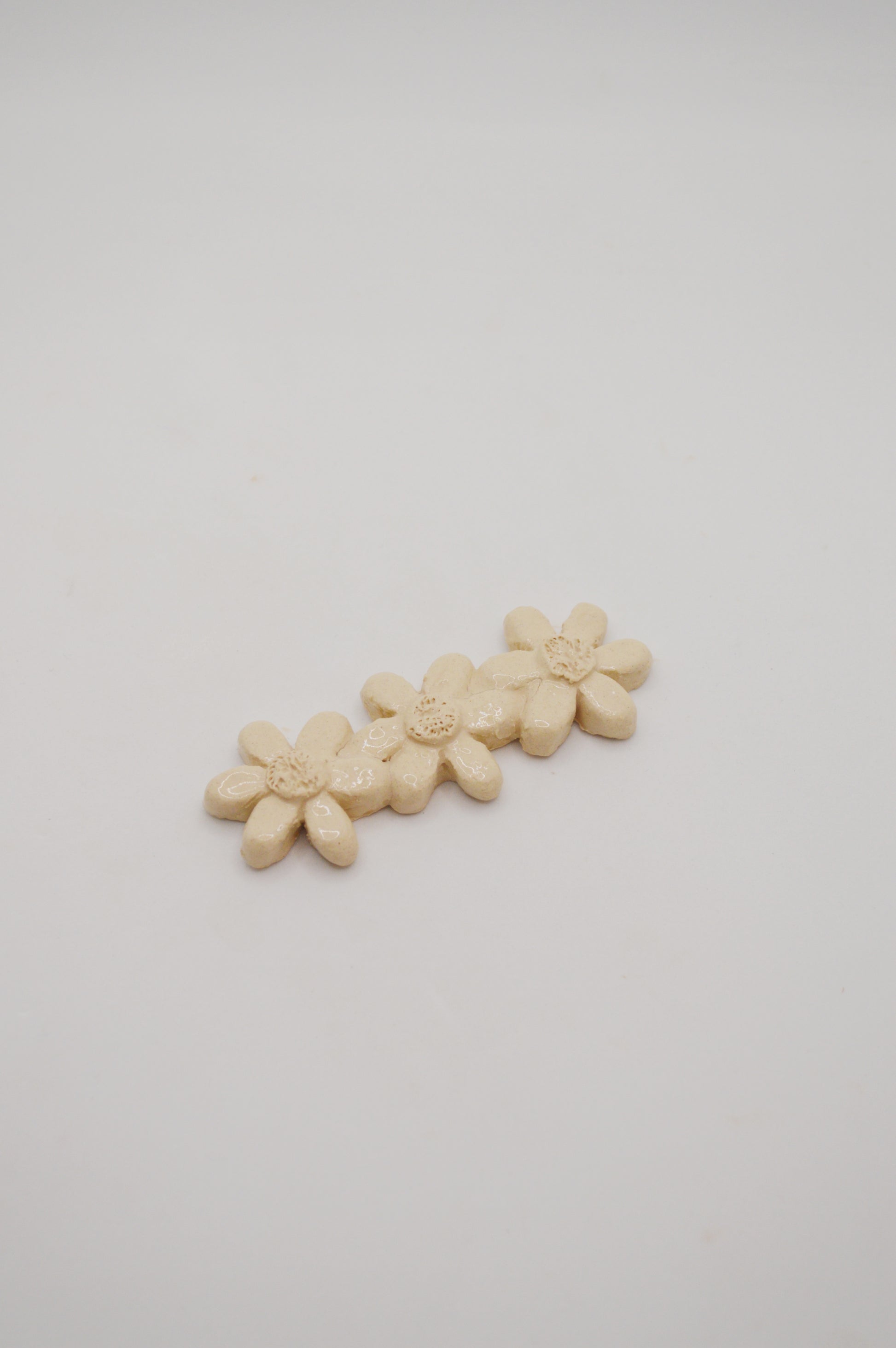 Grès crème lisse et émail transparent, 8,2x3,1x1,2cm, poids 24g.