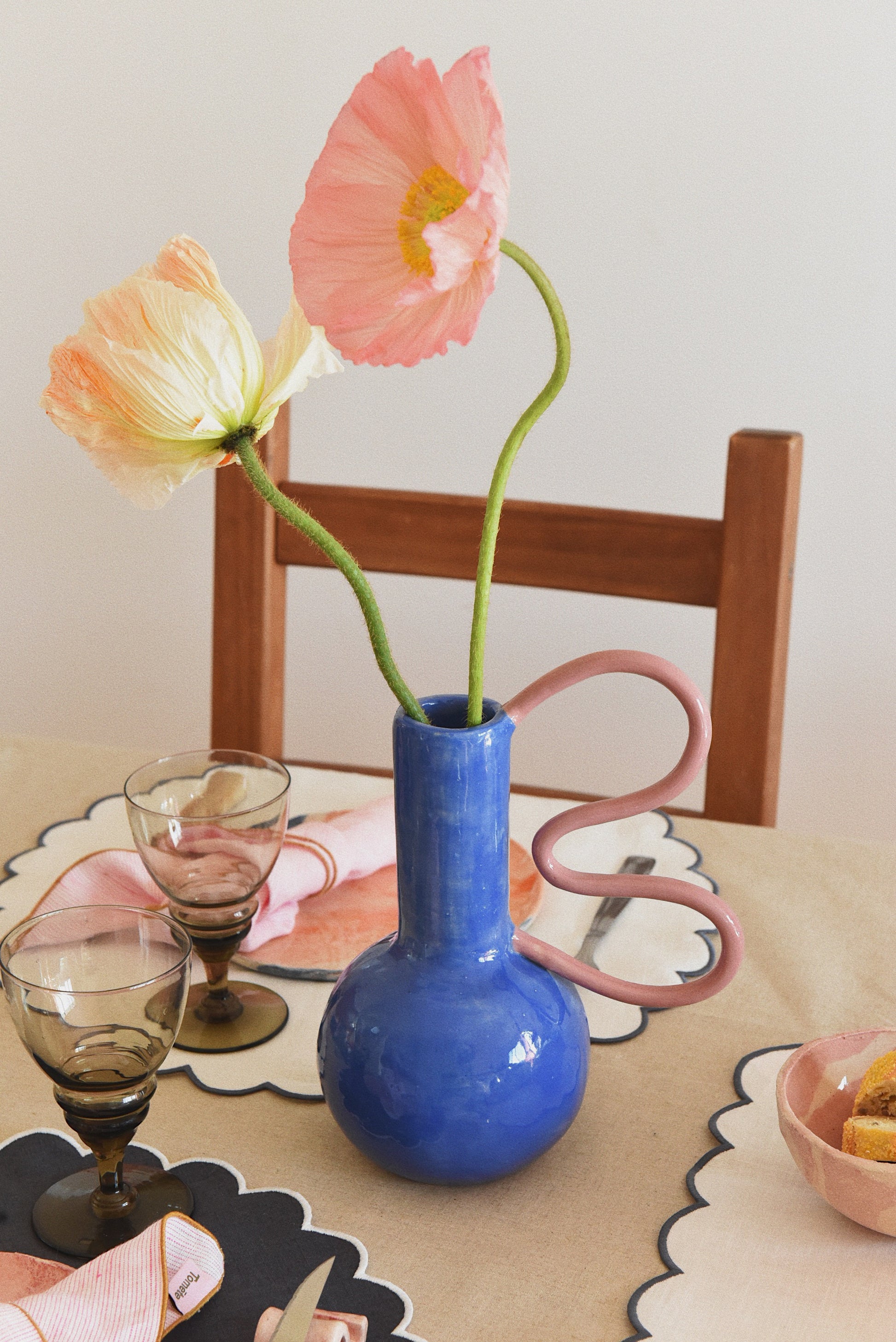 Un cocktail de fruits vitaminé aux formes rétros et arrondies, déclinées dans une combinaison de pigments acidulés, pops et ludiques. Chaque pièce est modelée à la main lui donnant ainsi son caractère unique.