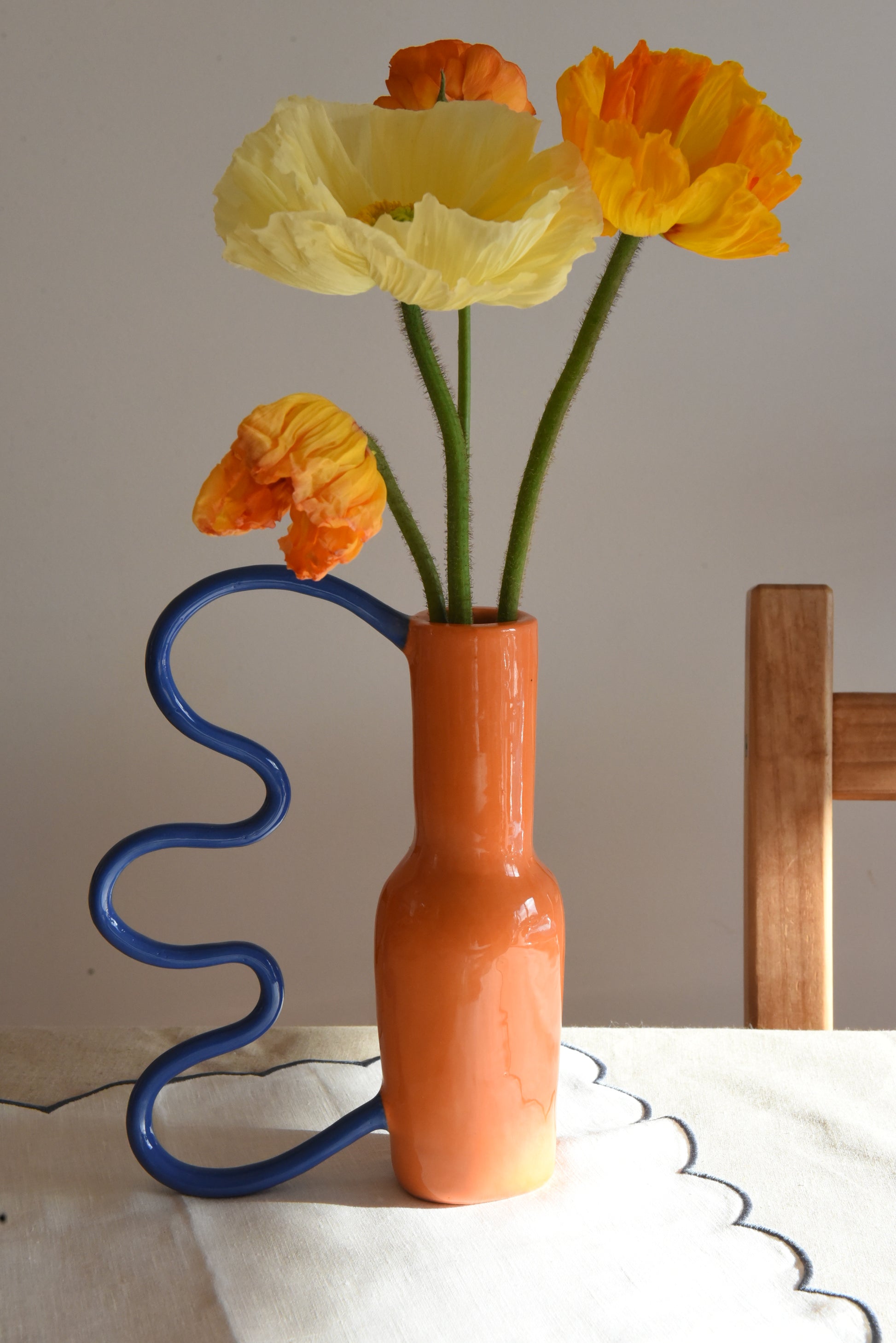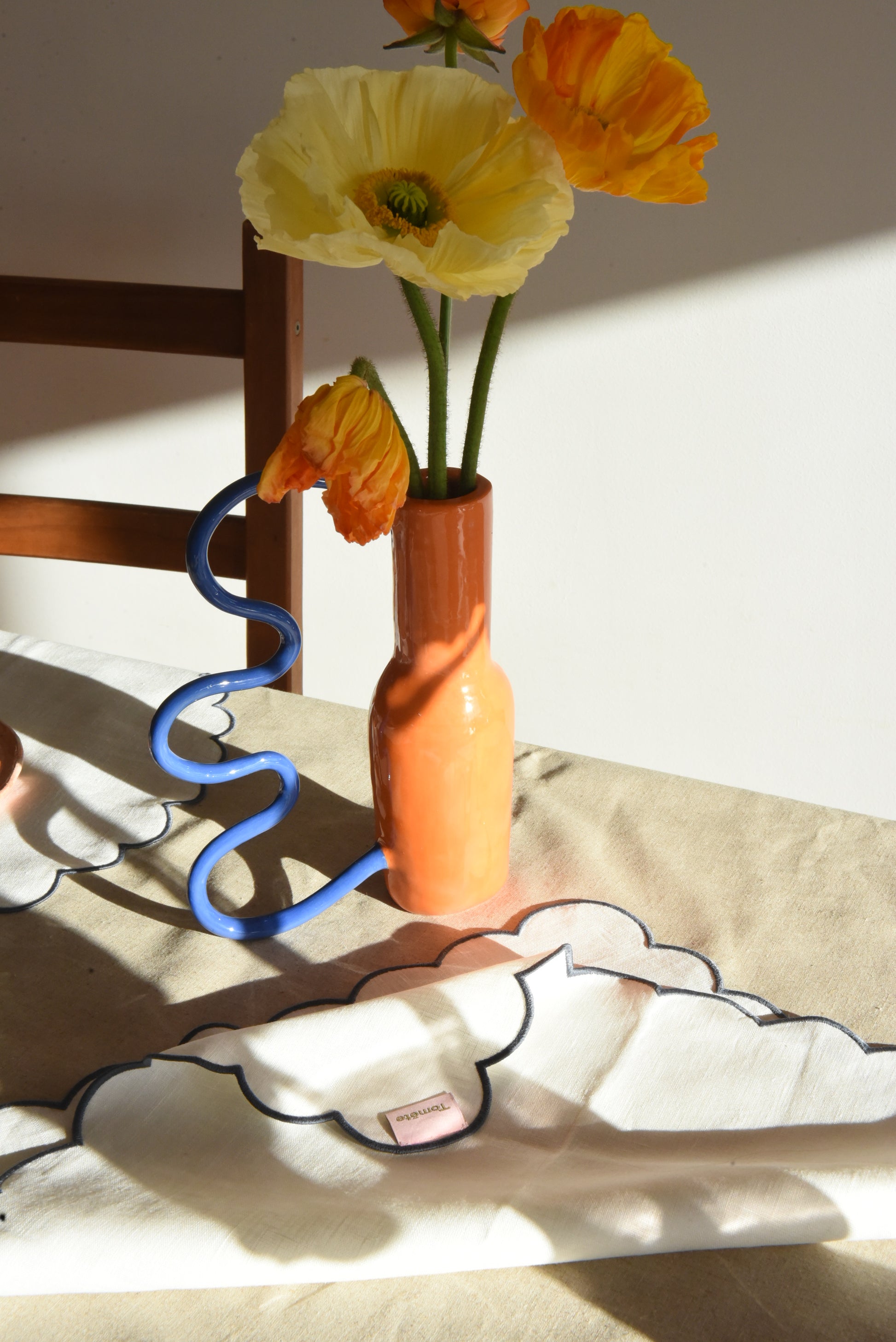 Un cocktail de fruits vitaminé aux formes rétros et arrondies, déclinées dans une combinaison de pigments acidulés, pops et ludiques. Chaque pièce est modelée à la main lui donnant ainsi son caractère unique.