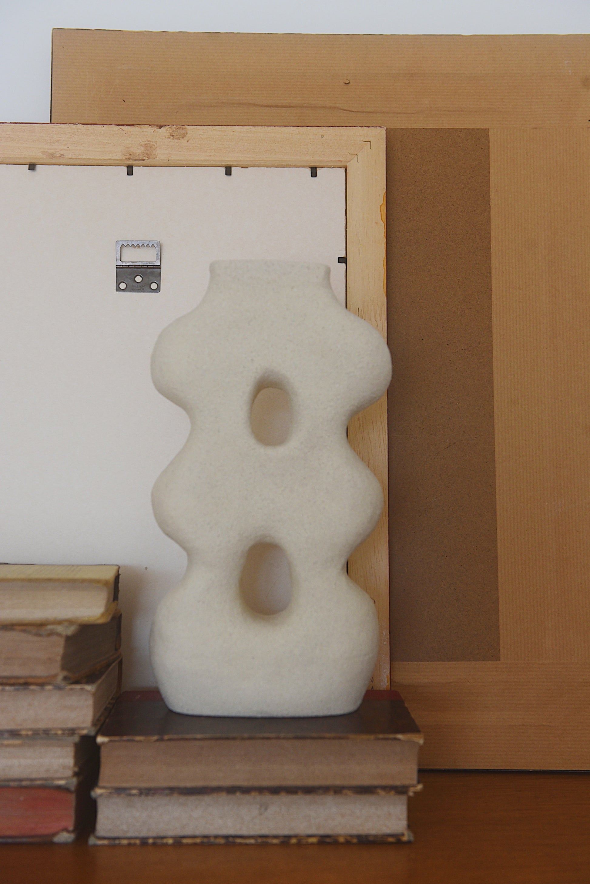 Grès blanc chamotté et émail transparent à l'intérieur.